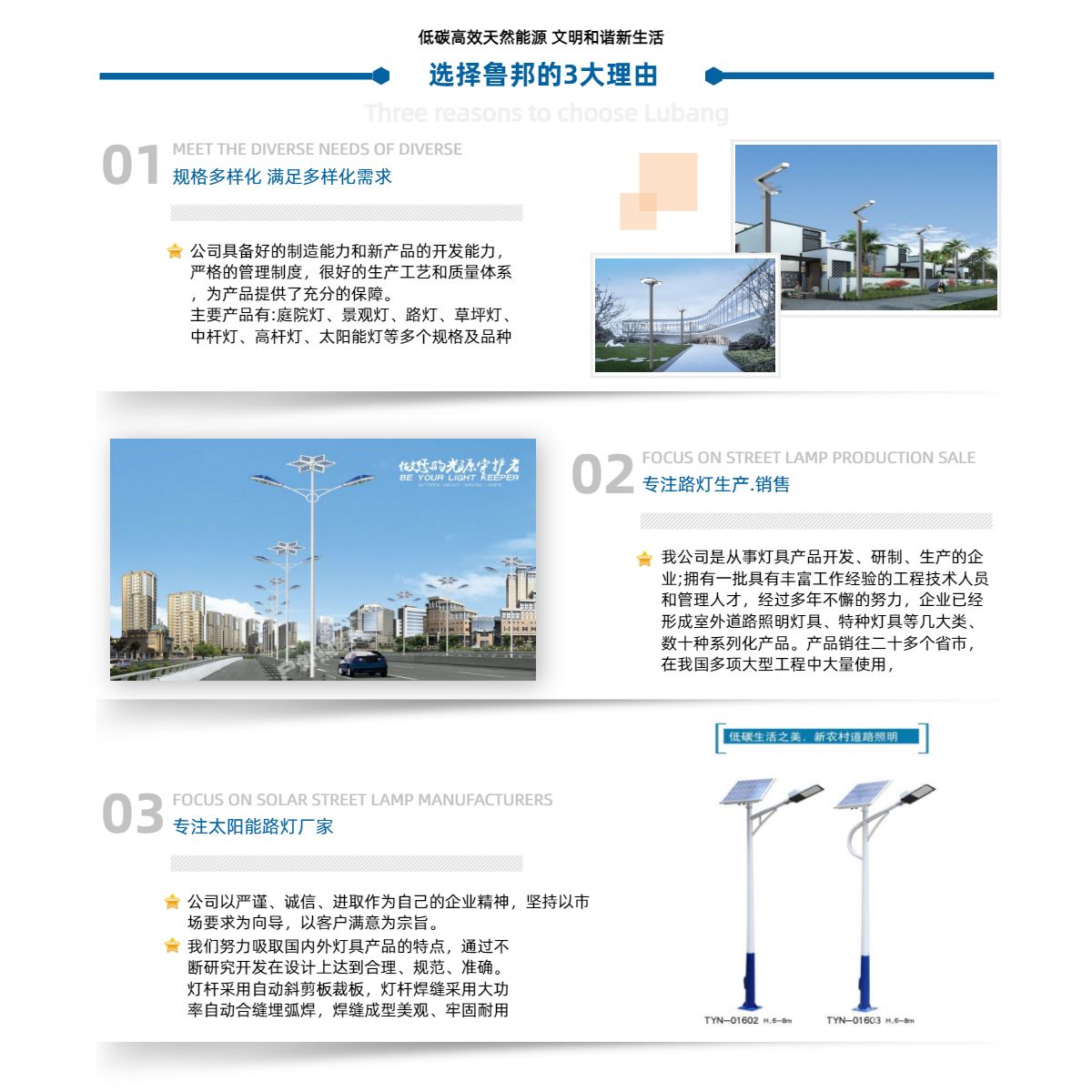 喀什市魯邦燈具廠是從事燈具產品開發(fā)、研制、生產的企業;產品有:太陽能路燈,高桿燈,景觀燈,庭院燈,中華燈,監(jiān)控桿燈等擁有一批具有豐富工作經驗的工程技術人員和管理人才,經過多年不懈的努力,企業已經形成室外道路照明燈具、特種燈具等幾大類、數十種系列化產品。產品銷往二十多個省市,在我國多項大型工程中大量使用。公司具備完善的制造能力和新產品的開發(fā)能力,嚴格的管理制度,很好的生產工藝和質量體系,為產品提供了充分的保障。公司以嚴謹、誠信、進取作為自己的企業精神,堅持以市場要求為向導,以客戶滿意為宗旨。公司將以產品質量和銷售服務為各界用戶提供放心的產品、滿意的服務。